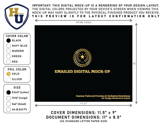 We specialize in creating custom size document covers tailored to your exact dimension specifications, no matter how unique!